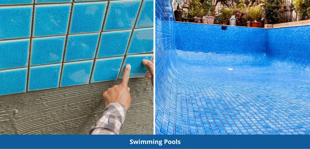 Swimming pools present a unique challenge due to constant water exposure and chemicals. Tile adhesives are specially formulated to withstand these conditions, offering improved chemical resistance and bonding strength. This makes them the ideal solution for pool installations, where durability and appearance are critical.